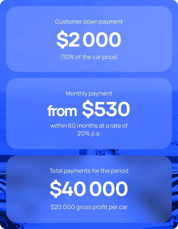 Revenue model: Customers pay 20% per annum on the remaining cost of the car after a down payment of 10-50%, which will be determined based on the customer's inspection.