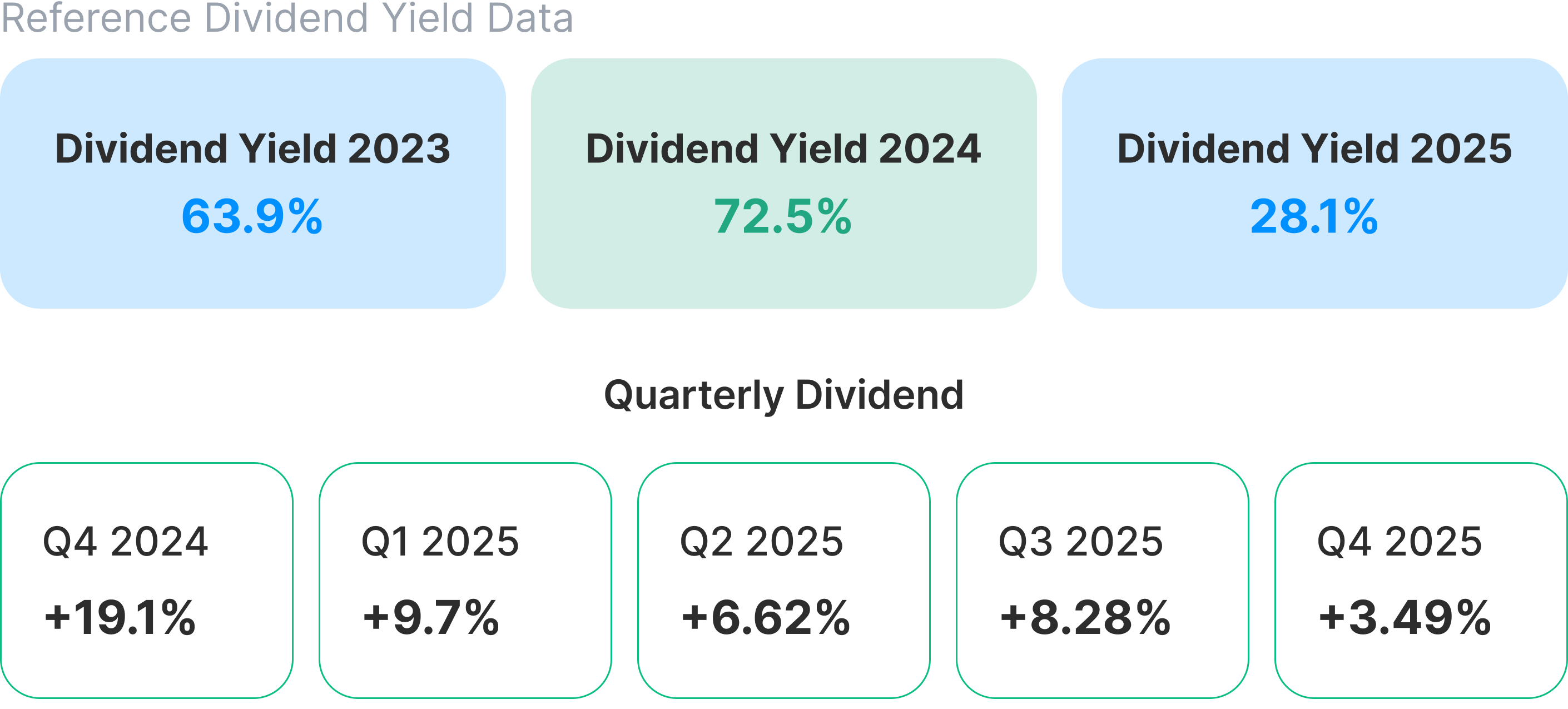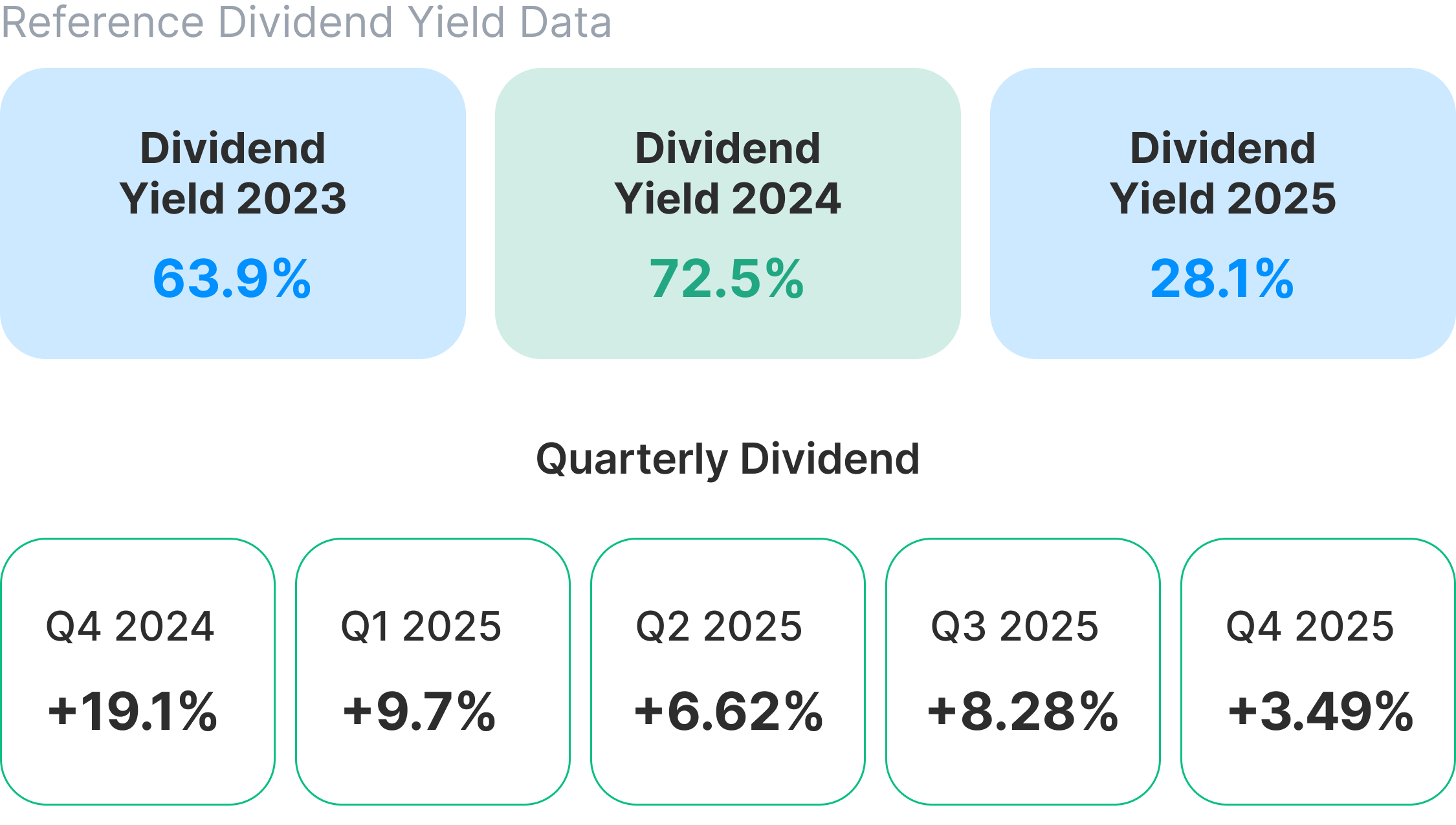 Investors benefit from weekly dividends paid in USDT without the complexities of managing the hardware or operations.