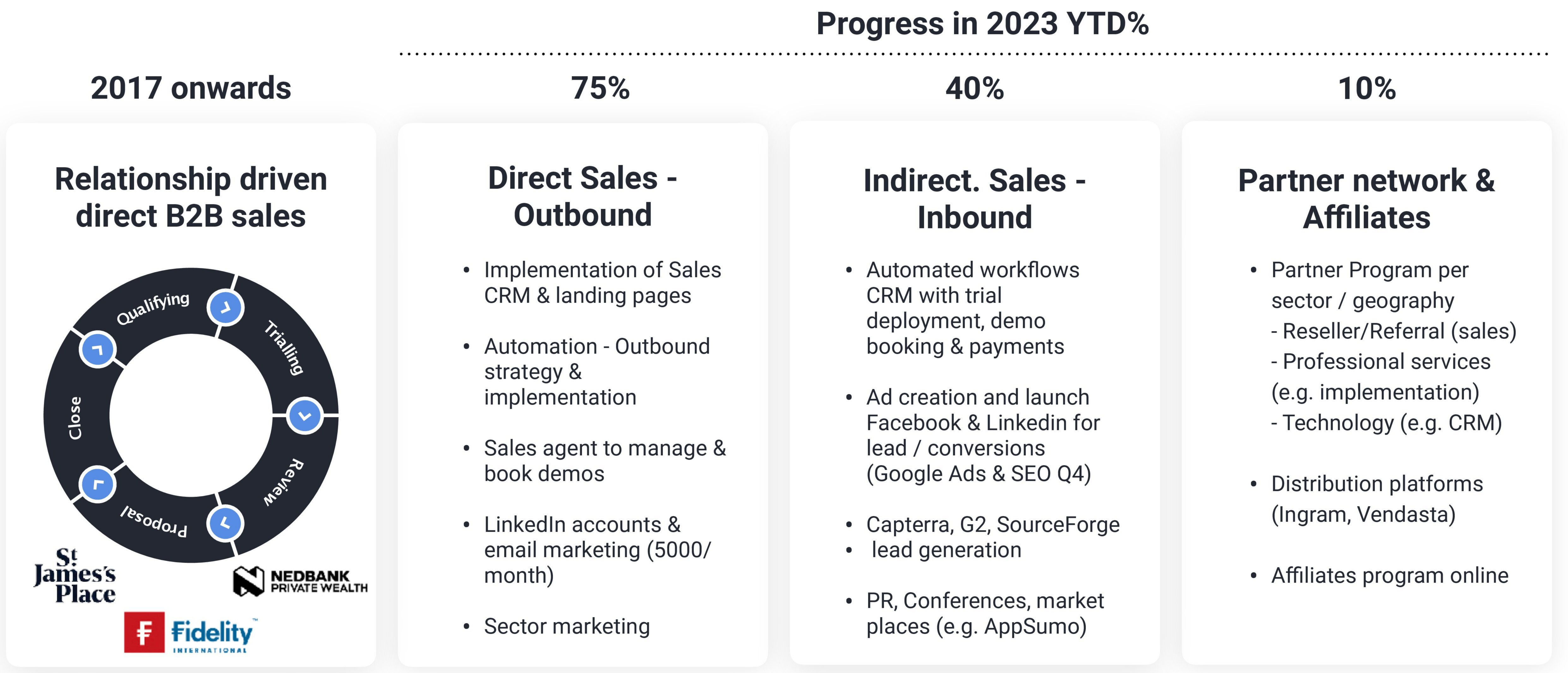 - Its clients include St. James' Place, Fidelity, NedBank, Global Block Digital Trading, and 100s of SMEs from