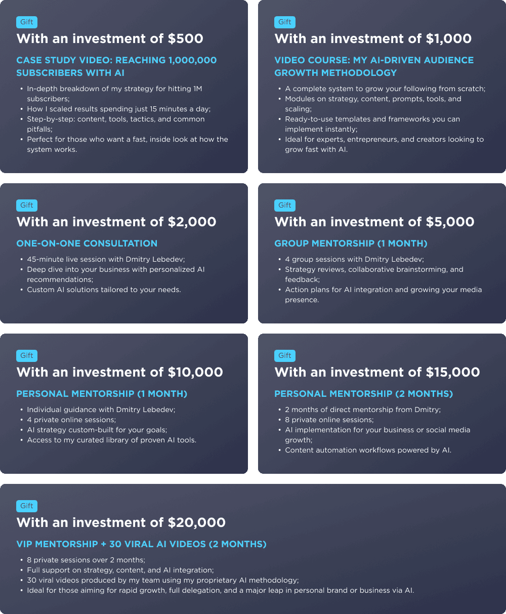 Dmitry will share his proprietary methodology for creating viral content with AI, growing an audience, and running high-performing social media accounts.