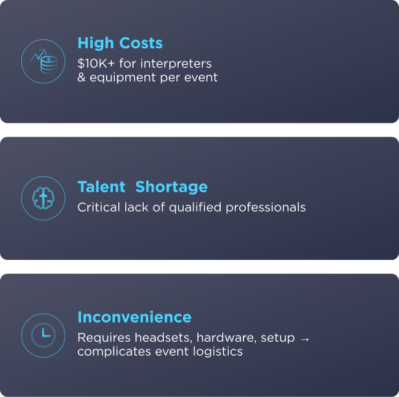 1. Event organizers — Conferences, summits, online events needing live multilingual translation