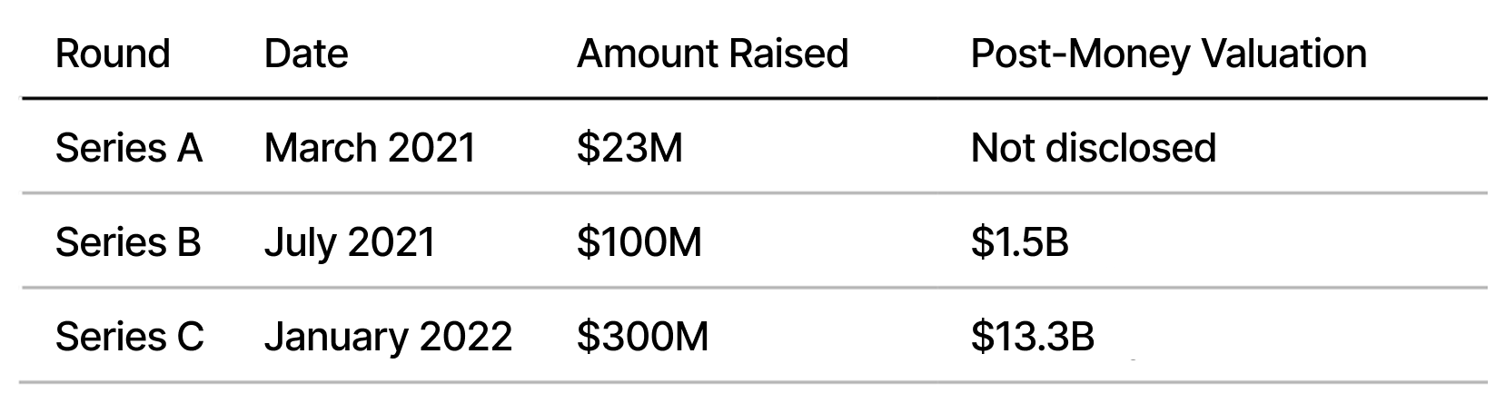 • Funding. The latest major round was Series C in January 2022. No new rounds have been announced since; total capital raised is approximately $427M.